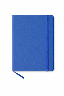 Блокнот формата A5, твердая обложка синий кожзам, (размер обложки 145×210 мм, внутренний блок 140×204 мм). Внутри 256 страниц из бумаги айвори 70 г/м², обеспечивающей комфортное письмо и аккуратный внешний вид записей. Блокнот оснащён ляссе и эластичной резинкой в цвет обложки.